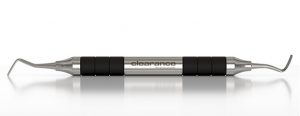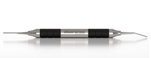 > Ergonomic handle with heat resistant silicon part (suitable for autoclave) for easy handling and anti-glide effect during work.