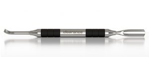 Essential instrument for nail design, suitable for removing remains of acryl or gel from the nail surface while minimizing danger of injury to the nail. Large, blunt and solid spoon cleaner on one side and sharp and solid knife on the other. Both functional heads are effective for work with artificial materials, but blunt to prevent pain and discomfort to the client and any injury to the nail bed.