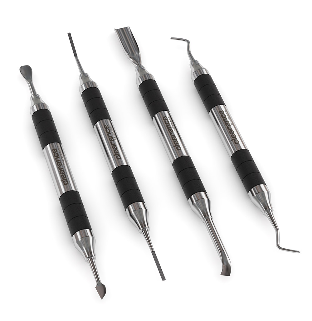 Set of 4 instruments specially chosen for being multifunctional and with double functional heads, provide technician with all necessary tools for perfect manicure and pedicure.